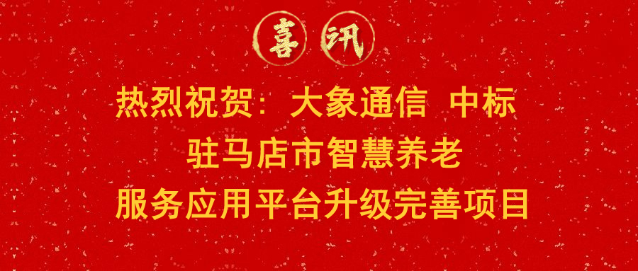中標(biāo)喜訊 | 熱烈祝賀大象通信中標(biāo)駐馬店市智慧養(yǎng)老服務(wù)應(yīng)用平臺(tái)升級(jí)完善項(xiàng)目